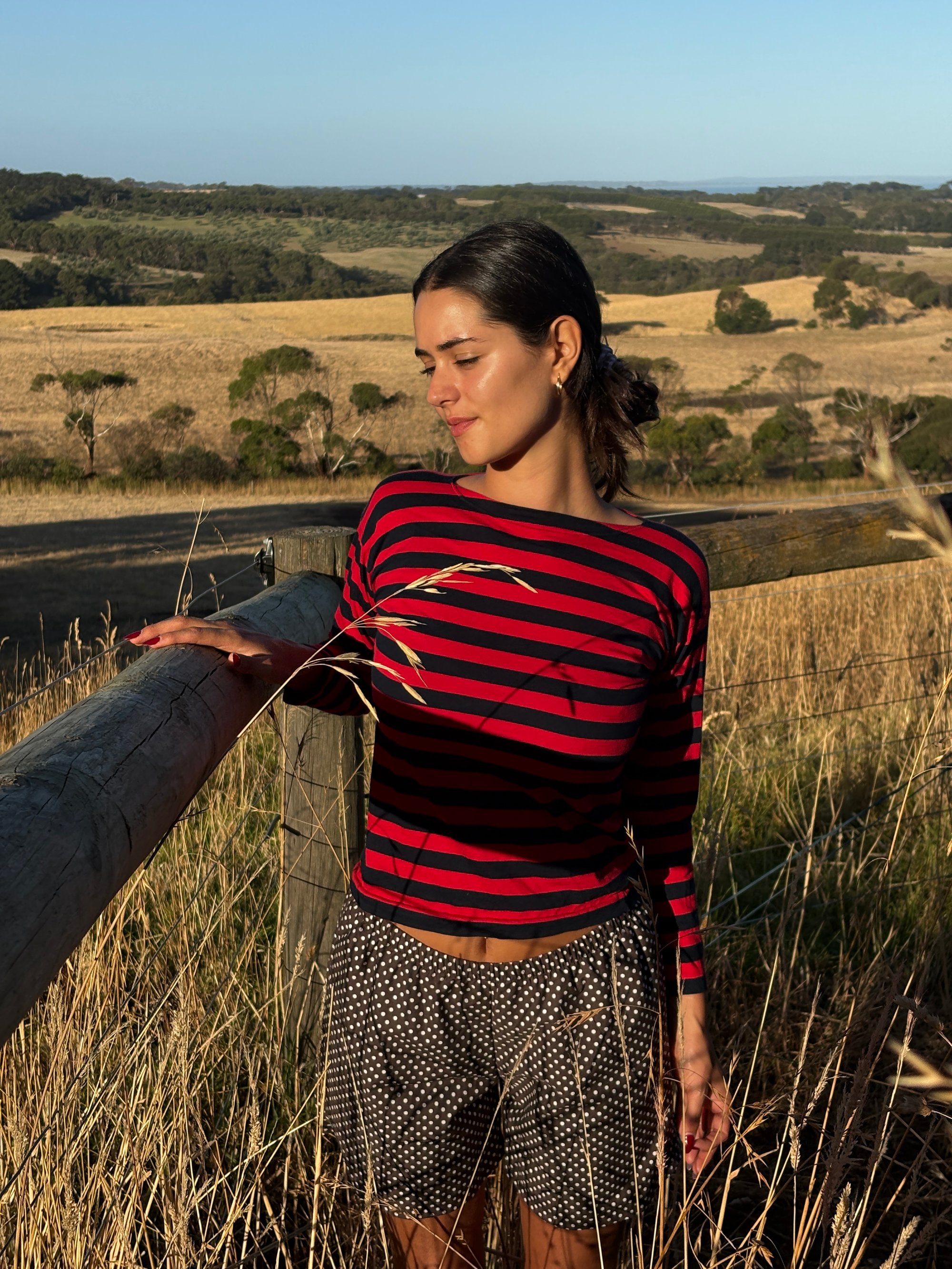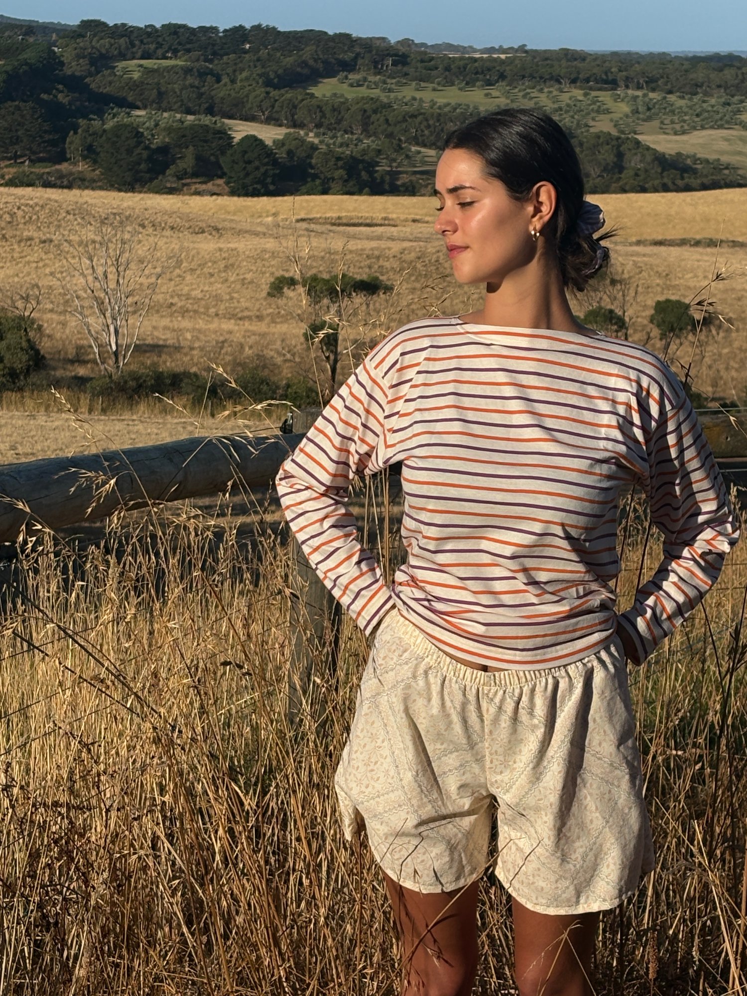 • Pictured: standard Aus 8 wearing size 1 (XS) and wearing a size 2 in the Green/Navy and the Orange/Purple/Cream